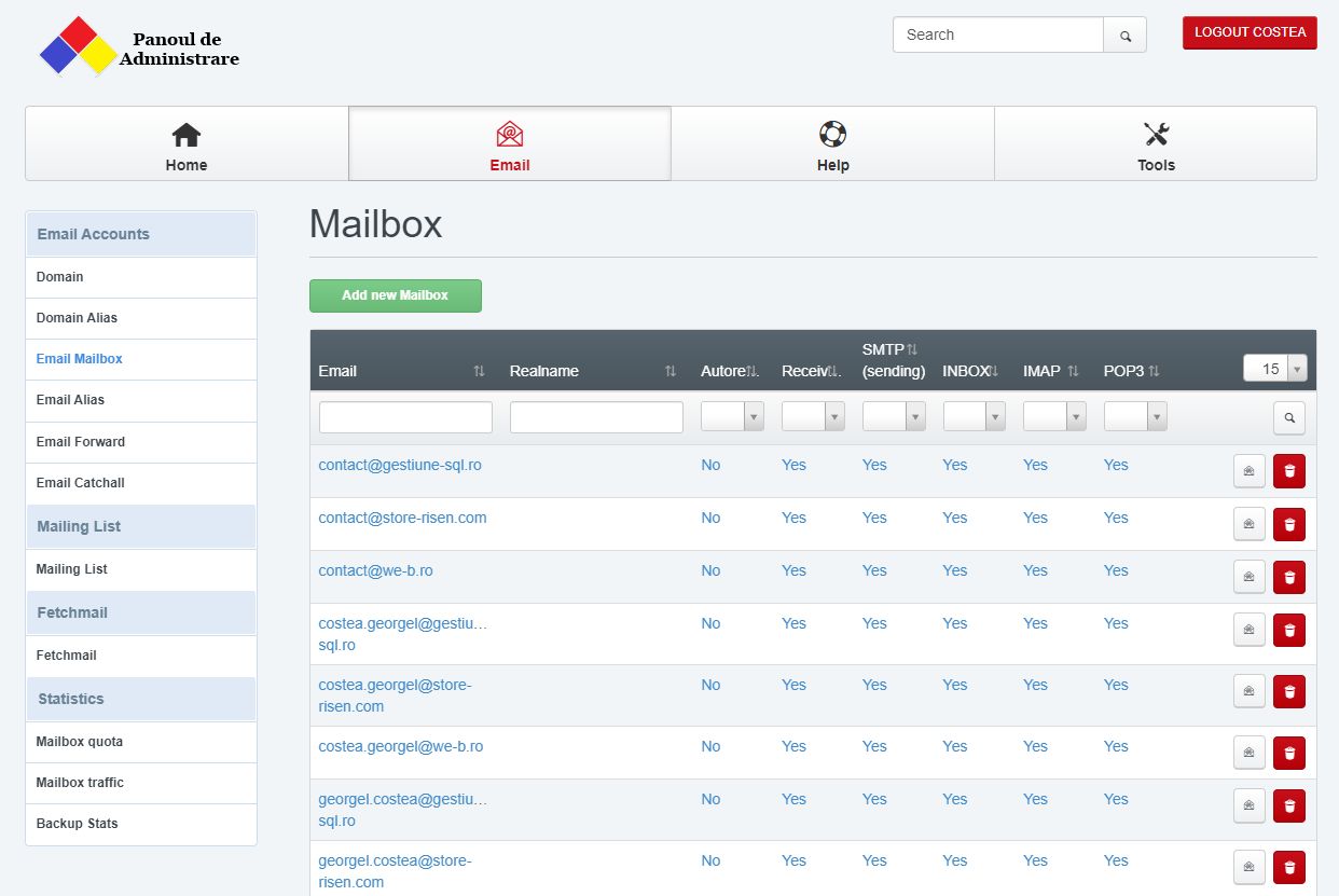 Va logati cu acreditarile primite pentru gestionare conturi ( se comunica la achizitionarea a 5 conturi de email prima data)